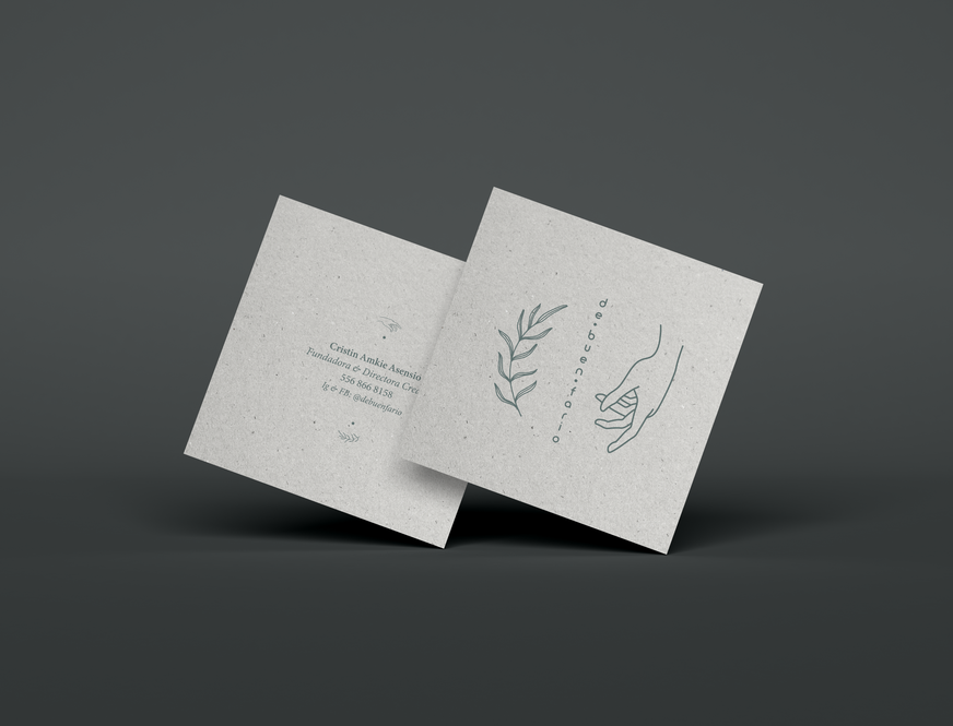 Texturas en papeles reciclados, paleta de colores neutros y formas orgánicas del logotipo se combinan en el diseño de la papelería para esta marca.